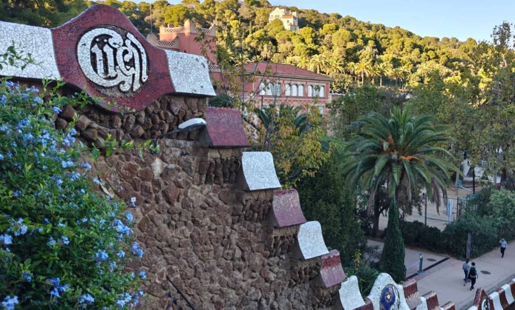 Und dann möchte ich den Gaudi Park sehen – und zwar so richtig, also auch den Teil, für den man bezahlen muss. Ich war schon so oft in Barcelona, aber im Park immer nur in dem Bereich, der öffentlich zugänglich ist. Und was soll ich sagen: Wir waren ganz schön naiv. Wir dachten uns, dass um diese Jahreszeit an einem Montag nicht viele Touristen in der Stadt wären, und haben uns nicht vorab um Tickets gekümmert. Als wir im Park ankommen, ragen uns schon Schilder mit „Sold Out“ entgegen. Dann wollen wir wenigstens den öffentlichen Teil sehen – auch das entpuppt sich als Fehlgriff, denn seit fünf Jahren ist der ganze Park nur noch mit Eintritt zugänglich. Auf die Enttäuschung hin setzen wir uns vor dem Parkeingang mit einem Pistazien-Croissaint und Donut, und genießen den Anblick wenigstens von außen, bevor wir zurückfahren. Wir nehmen uns ganz fest vor, am Rückweg unserer Reise noch einmal wiederzukommen – mit vorher gekauften Online Tickets.